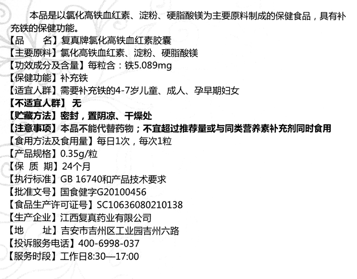 復(fù)真牌血紅素